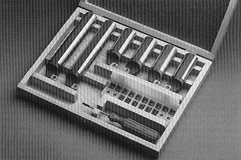 v drevenných kazetách s náhradnými doštičkami, upínacími